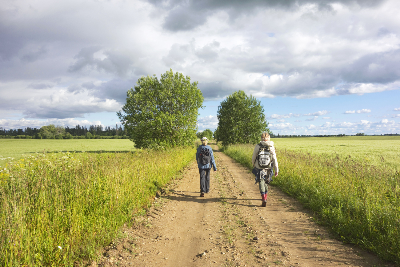 Oleme jõudnud Kaaruka külla. Teispool põldu seisavad mõlemat kätt talud. Oleme kruusateel, suurelt maanteelt siiani oleme kõndinud (ja vahepeal ringi vahtinud-jorutanud ka) ligi tund aega. Nüüd vasakule! Paremal talukohad, siis vasakut kätt Liivalaia – talu nimi on raiutud suurde maakivisse, sedamoodi on siinkandis mitmel pool. Edasi minnes jääb tee äärde viljapõld. Noor vili on kui hõberoheline siid, käime lausa silitamas. Põllu lõpus keerame paremale, meie tee läheb edasi Niine talu juurest põllu teist serva pidi. Niine talu puude all vihmahoo raugemist oodates veendume, et oleme kõndinud 3,5 tundi. Sadu lakkab niisama äkitselt nagu algas ja astume edasi.