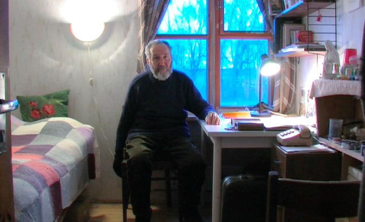 Isa Guy oma toas Kodasemal. Kaader Andri Luubi filmist „Isa Guy”.