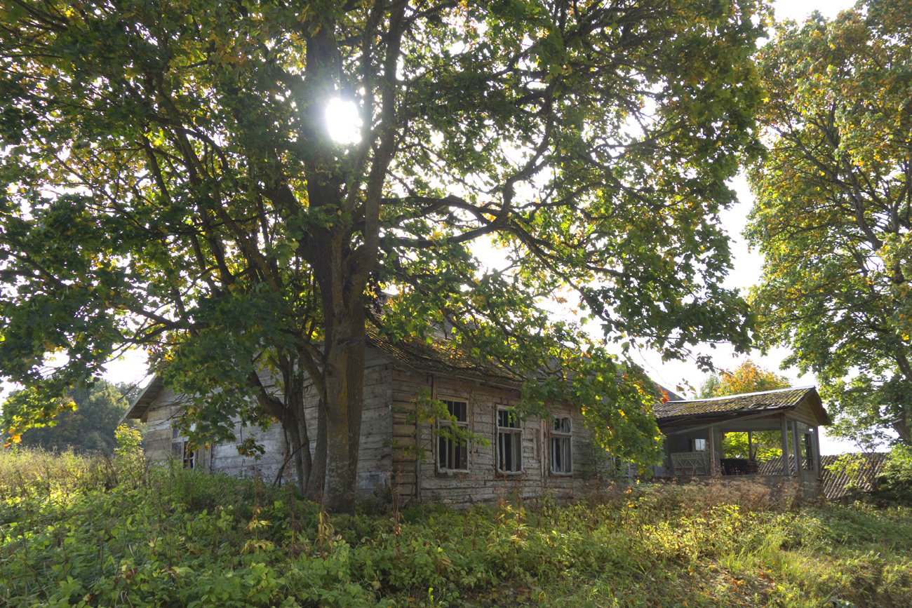 Küla algab lagunenud moega, ilmselgelt ammugi ilma hoolde jäetud majaga. Kõigi märkide järgi oli see omal ajal ilusa verandaga väärikas maja. Küla pealt saame teada, et siin olla elanud kooliõpetajad.