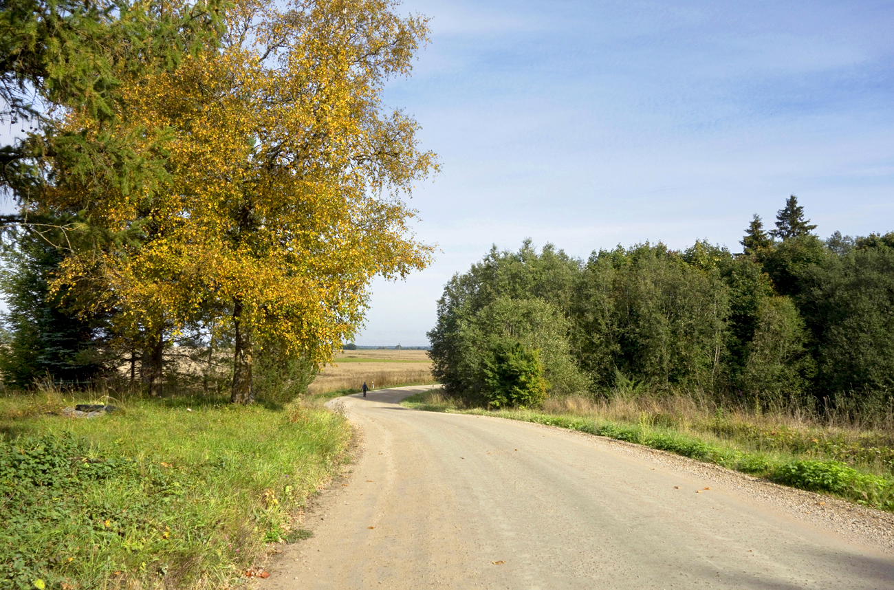 Kahel pool teed on suured põllud ja avarad vaated. Puudetukas, kus tee hargneb, läheme vasakule. Kui jõuame Saarse talu juurde (seal on mesipuud ja koer Rocco), keerame maja tagant vasakule ja kohe oleme järgmisel teeristil. (Paremale jääb Valila küla, kus pidi elama ainult 1 pere!)