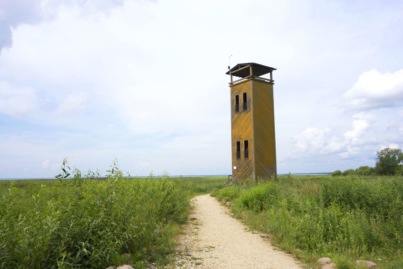 Eemalt paistab kui maamärk kõrge punane sillakaar. Nüüd läheme üle maantee – otse ees terendab 15 m kõrgune 2008. aastal püstitatud linnuvaatlustorn ja Emajõe lähtel asuv Võrtsjärve külastuskeskus, kus saab maitsvat toitu ja kosutavat jooki, aga ka ööbida.