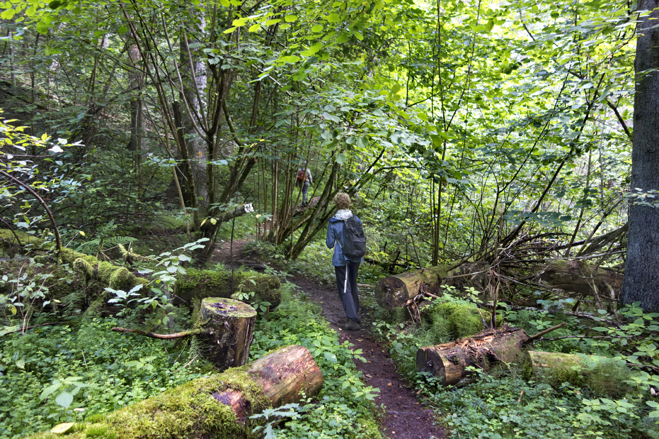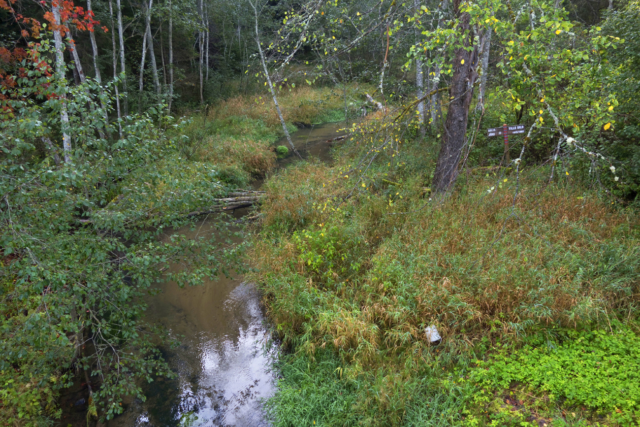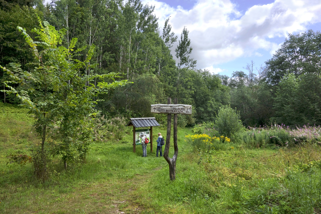 Rada viib Hurmi oja veert pidi tagasi maanteele. Tuleme mäest alla ja kahe vahtra vahelt teeotsani. Meie kõndisime matkarajal vastupäeva, aga võib käia ka päripäeva ja alustadagi siit, ühtviisi ilus on ikka.