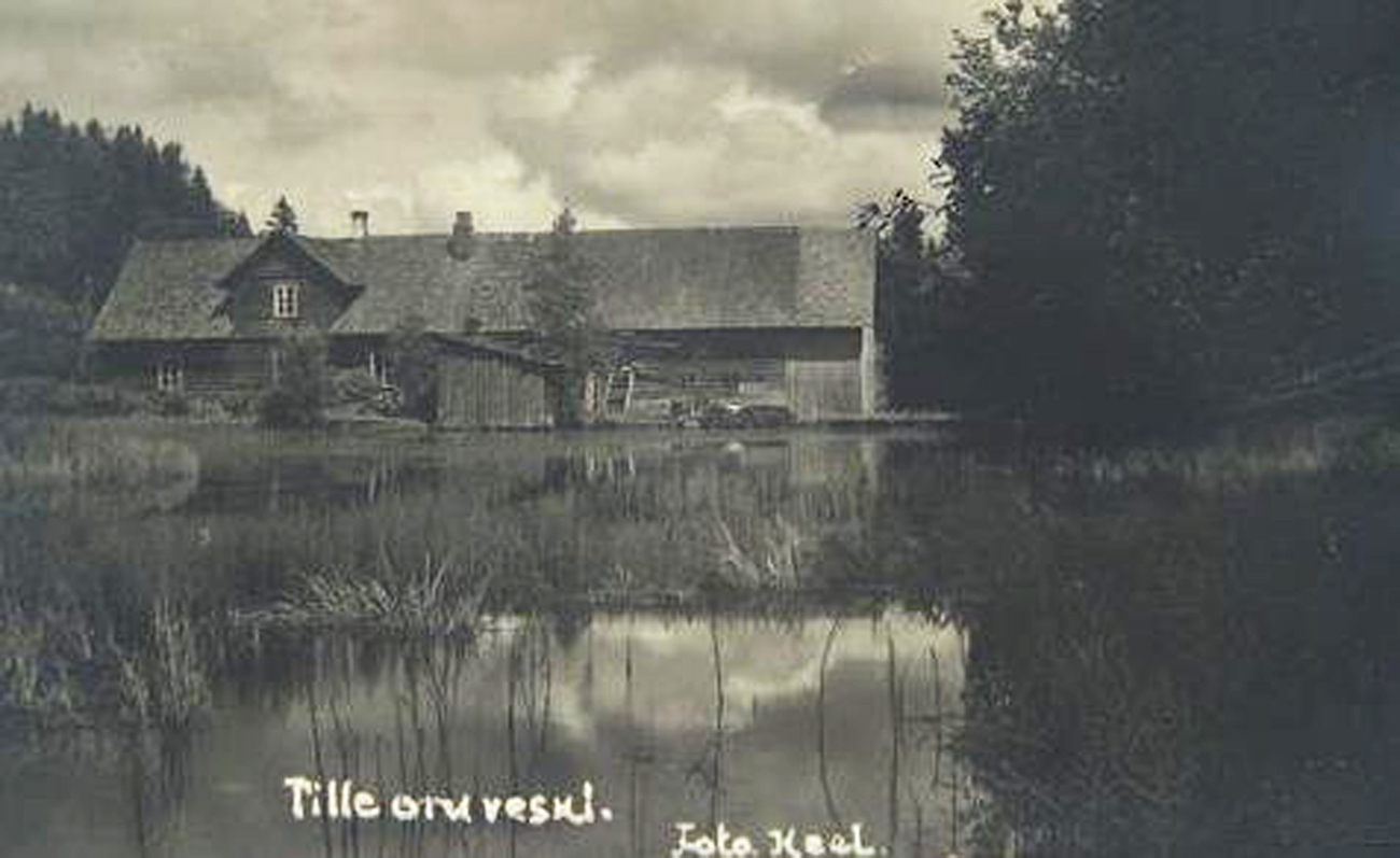 Tilleorg 1925, paremal Tille kõrtsi varemed. Foto: Konstantin Kalamees. ERM Fk 461214.